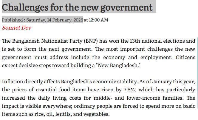 Md Jafar Ullah Source : New Age, 15 February, 2026