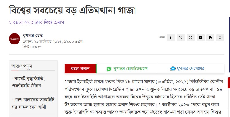 ২ বছরে ৫৭ হাজার শিশু অনাথ [প্রকাশ: যুগান্তর, ২৩ অক্টোবর ২০২৫]