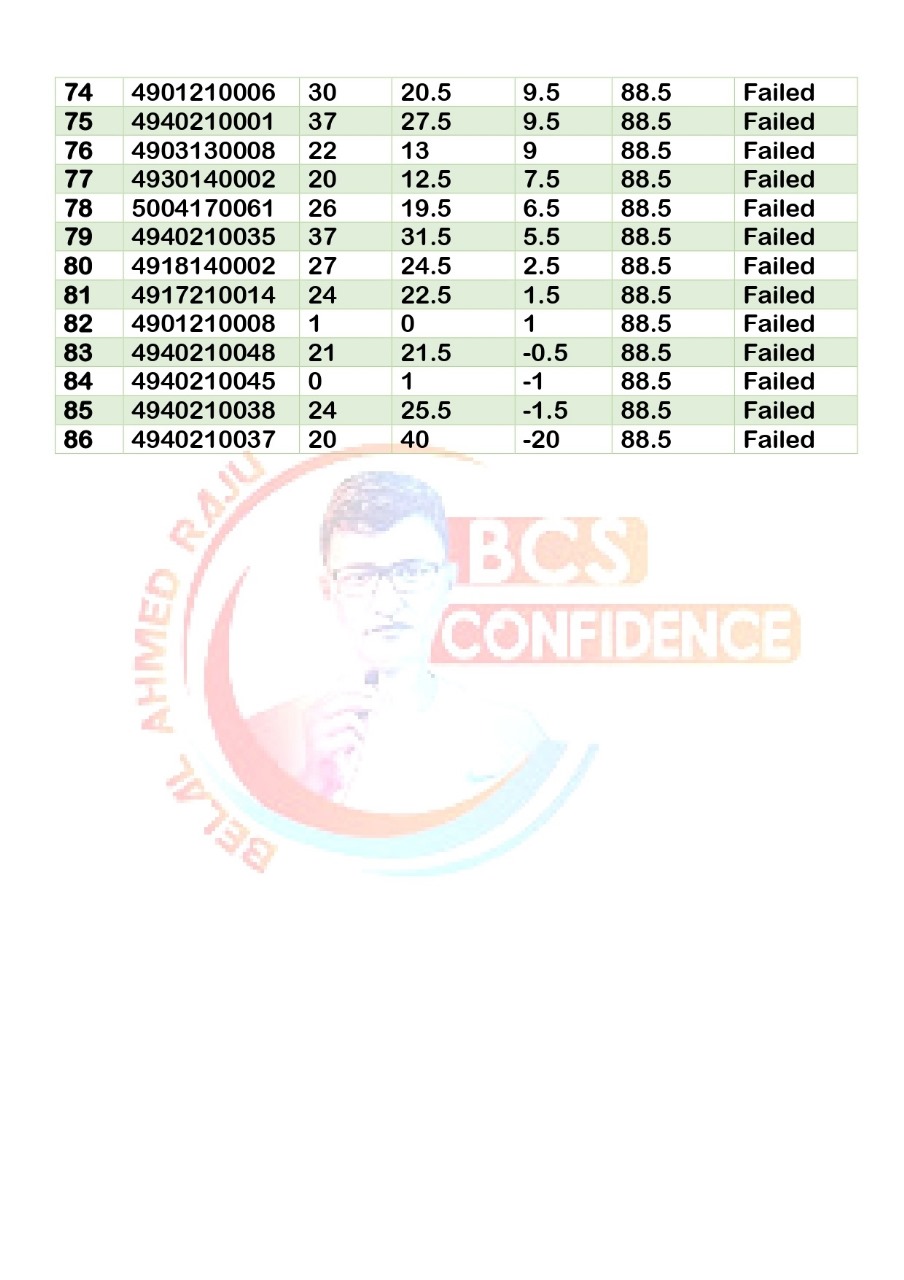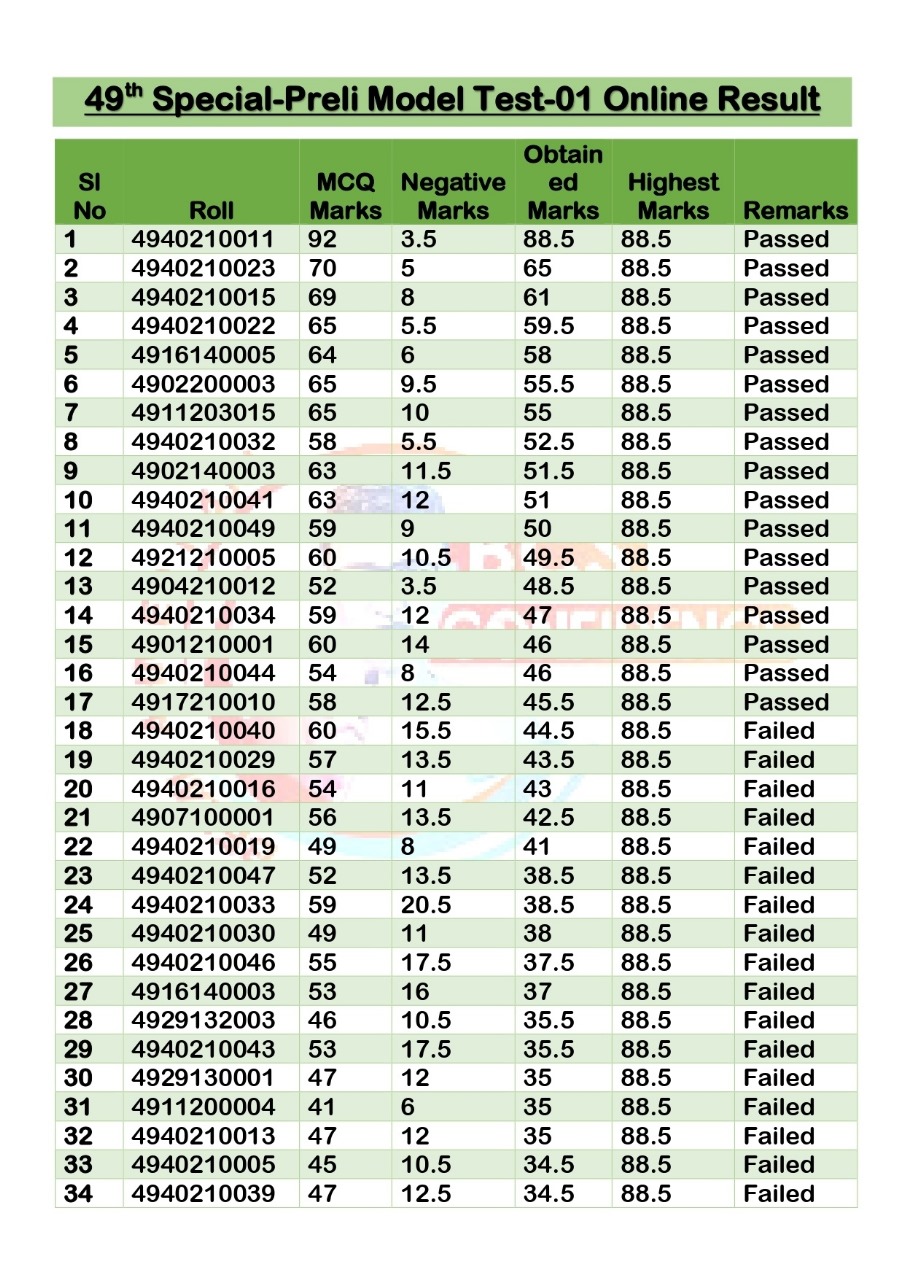 49th Special BCS Model Test-01 Online Result